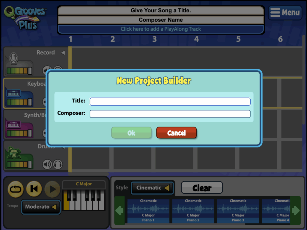 QGrooves Plus is a QuaverMusic Creative that allows you to create songs by dragging loops to an instrument grid. In this Creative, you can add pre-recorded loops for Keyboards, Synth/Brass, Drums, Percussion, Bass, Guitar, and Vocals.